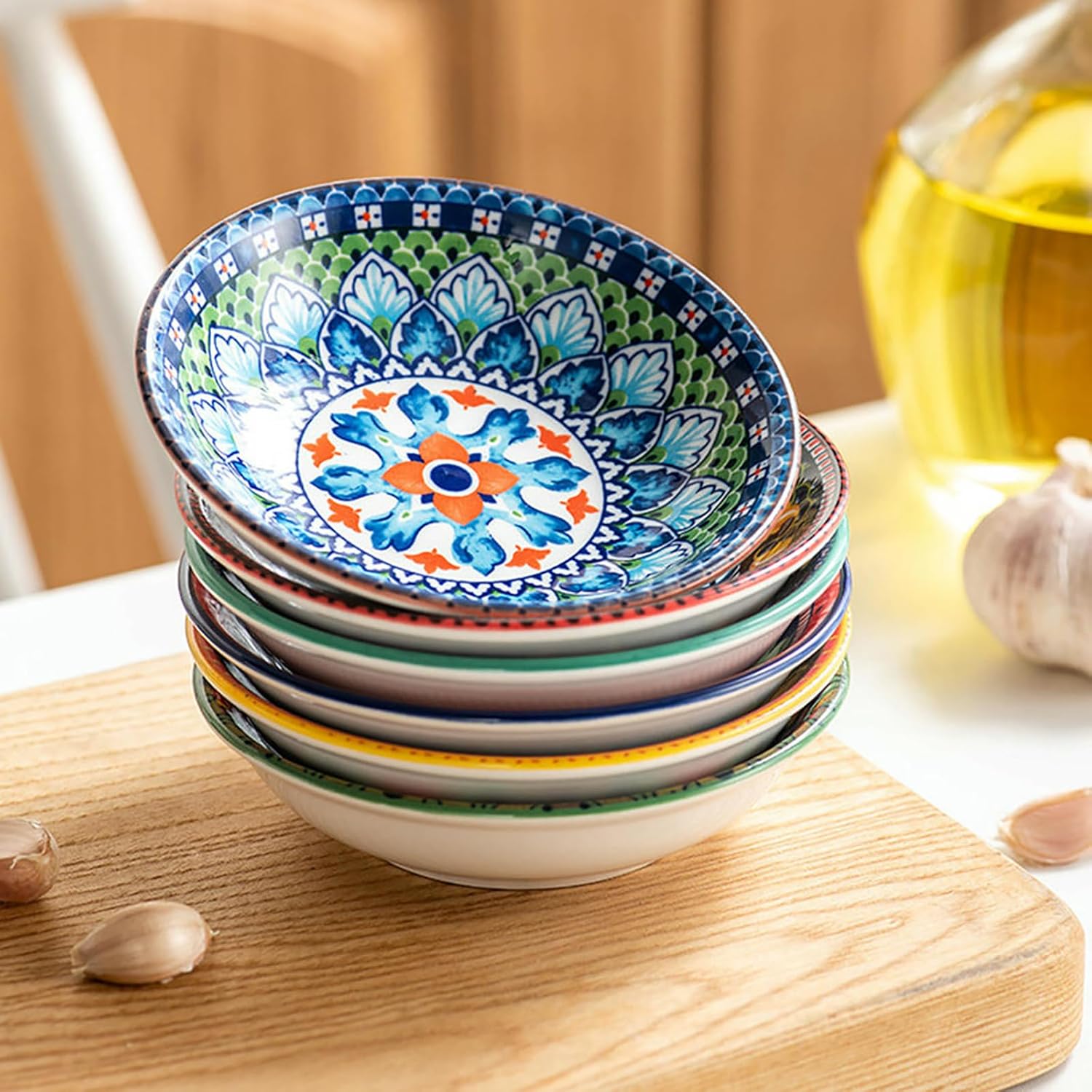 Product Category: Plate, BowlMaterial: CeramicPattern: MultipleStyle: Bohemian StyleShape: RoundColor: Six ColorsStyle Type: Light Luxury Vintage