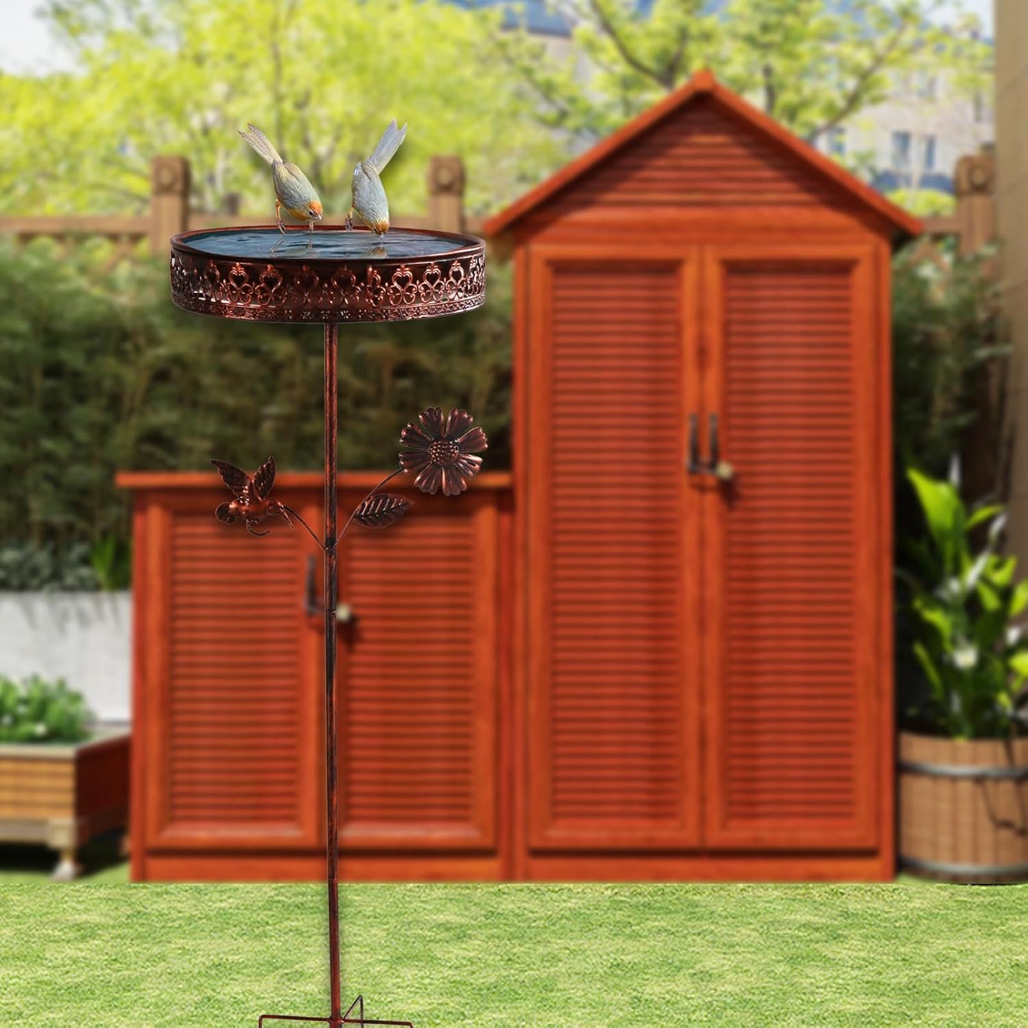 Description: - 【Material】: Crafted from sturdy iron, this Bird Bath is designed to withstand harsh weather conditions and provide long time to use. It offers a reliable food source for your feathered friends, ensuring peace of mind - 【Convenient Stake Design】: This outdoor bird bath is easy to install and relocate. Its unique freestanding design requires no complexed setup, allowing you to effortlessly position it in a great place on your garden - 【Versatile Use】: Effortlessly draw feathered visitors to your outdoor areas with a birdbath. It is great for any outdoor setting, including balconies, gardens, parks, patios, decks, fences, yards, lawns, porches, birdhouses, and flowerbeds - 【Gift】: This bird bath bowl is a housewarming gift for relatives and friends, and adds beauty and liveliness to your garden or yard - 【Space Enhancer】: Transform your outdoor area with this charm garden bird water bowl that adds a touch of whimsy and allure. Its design enhances the beauty and aesthetic look of gardensSpecification: - Material: IronSize Chart:24.5 cmx24.5 cmx83 cm/9.65 inchx9.65 inchx32.68 inchPackage Includes:1 Bird Bath with Garden StakeNote:1. Please allow slightly error due to manual measurement.2. Due to the difference between different monitors, the picture may not reflect the actual color of the item.