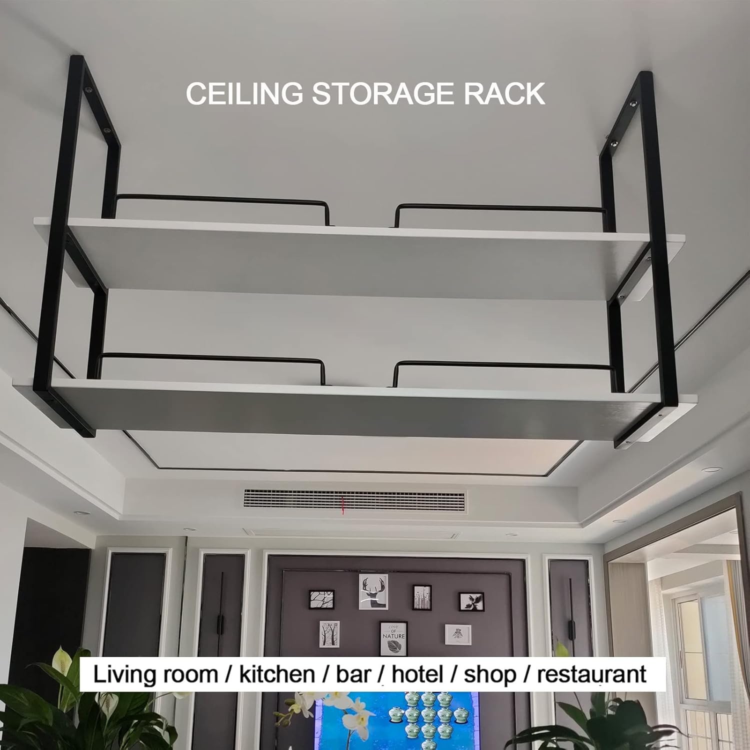 Introducing our wall-mounted multi-shelf storage organizer unit, designed to elevate the aesthetic of any room while providing practical storage solutions. Its clean, minimalist design seamlessly complements modern interiors, making it an ideal addition to living rooms, bedrooms, or office spaces. Crafted with a sturdy structure, this shelving unit ensures durability and stability, perfect for displaying cherished collectibles or decorative items. Installation is straightforward, allowing you to transform your space effortlessly. The elegant finish enhances your décor while offering a functional storage option that helps keep your environment tidy and organized. Whether you're looking to declutter your home or create a stunning display for your favorite items, this versatile unit caters to various needs. Our modern creative ceiling racks are not just stylish but also designed for everyday use. They are perfect for a wide range of settings, including homes, bars, businesses, and entertainment venues. Embrace a comfortable and simplified lifestyle with our beautifully crafted shelves, which bring both functionality and artistry to your space. Available in a variety of sizes, these shelves can be customized to fit your specific requirements. If you need further consultation or personalized options, please feel free to reach out to us via email. Enhance your home and experience the perfect blend of style and utility with our multi-shelf storage organizer today.