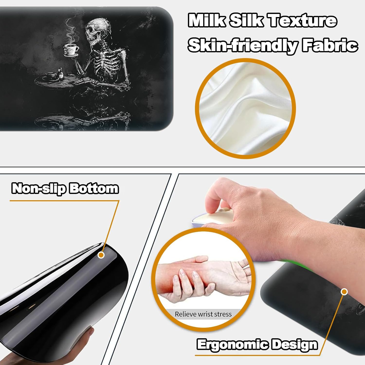 Ergonomic wrist pad and Mouse Pad Set Size Mouse wrist rest is 6.3x4.3 inch, Desk Mat 23.6x11.8 inch, Mini Mouse Pad (7x5.5x0.08 inches).Suitable for men and women. Great for gaming, working, studying and daily use. Ergonomics design Ergonomic Design Ergonomic mouse pad kits are perfect for bending your wrist and provide soft support to reduce wrist stress, fatigue and pain. and maintaining wrist comfort and normal blood circulation. High -quality materials Wrist Rest Pad made of memory foam & smooth milk silk fabric material. Slow bounces back are not easy to out of shape and provide comfortable and elastic support to the wrist. Desk Mat with exquisitely stitched edges can prevent wear, deformation, and degumming during long-term use, suitable for long-term use. Small Mouse Pad Uses Wireless Mouse, Standing Desk, Keyboard Drawer, Office, Home, Cafe, Travel, etc. perfect for tight working spaces. Beautiful pattern Our mouse pad using Full color HD print to ensures that you get what you see, meet your expectations. Vibrant colors, durable, non-fading, not dull, style your desk. It is your ideal companion for work, Game and study. If you have any questions about our products,please feel free to contact us,we will reply your information within 24 hours and give you a satisfactory answer!