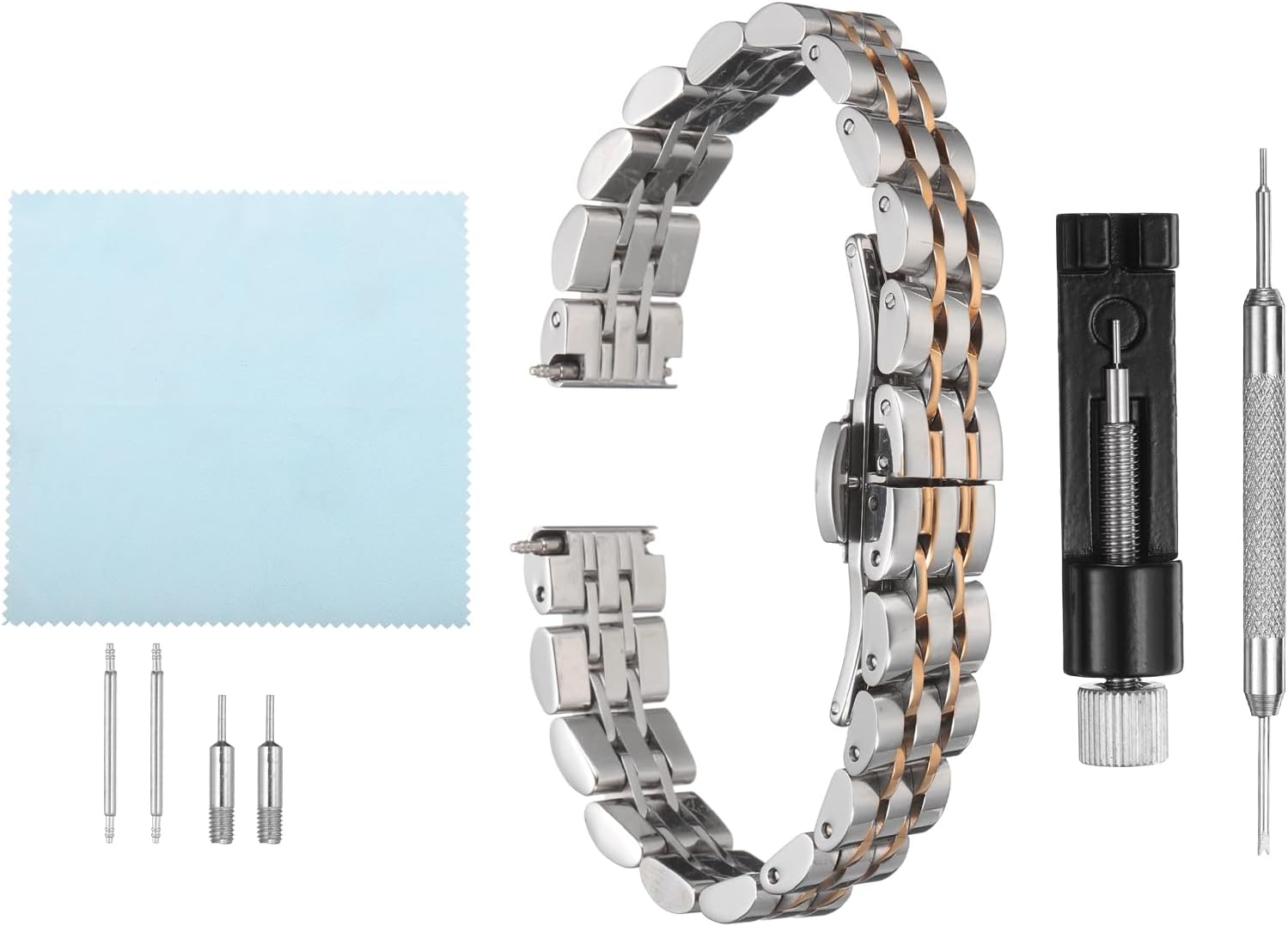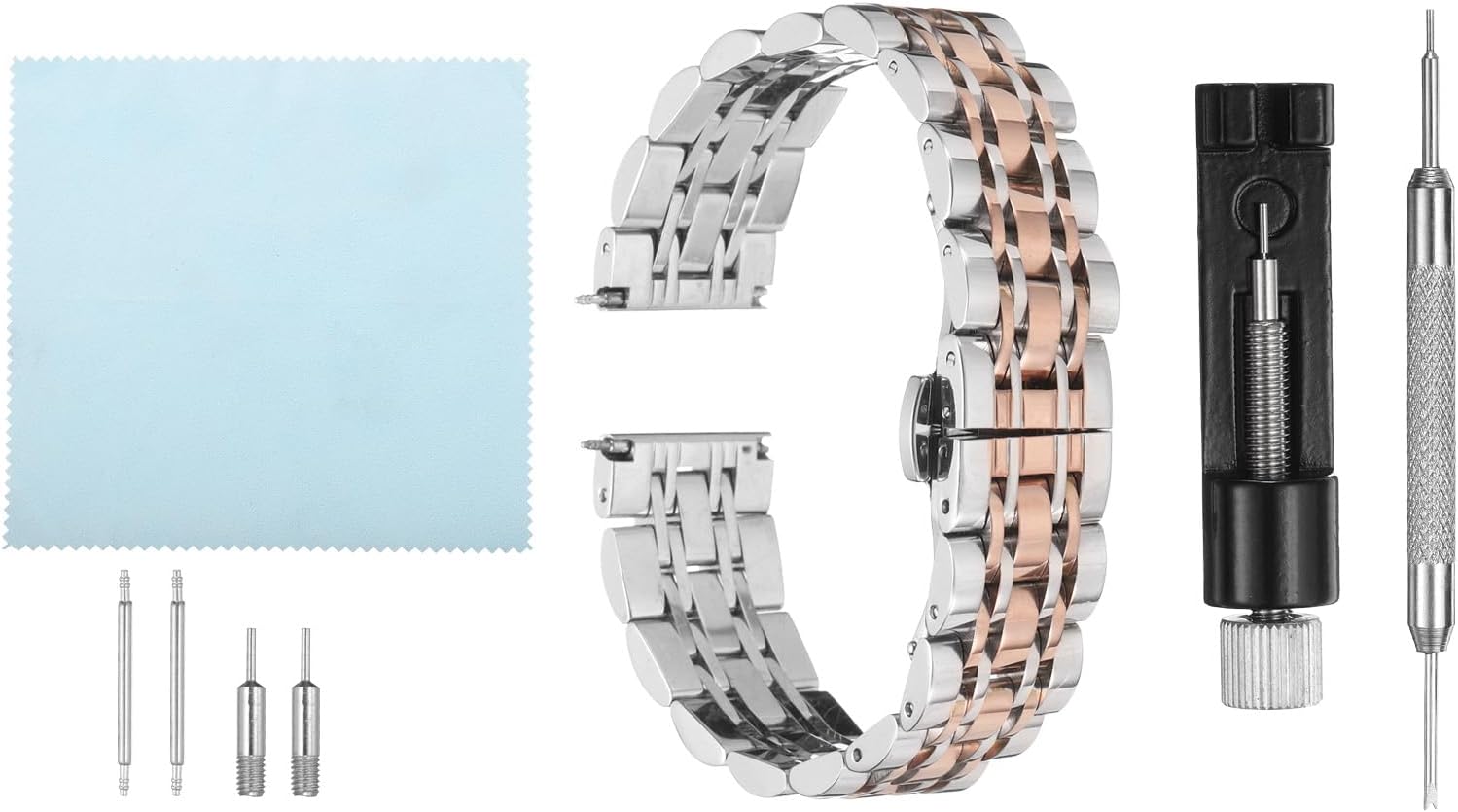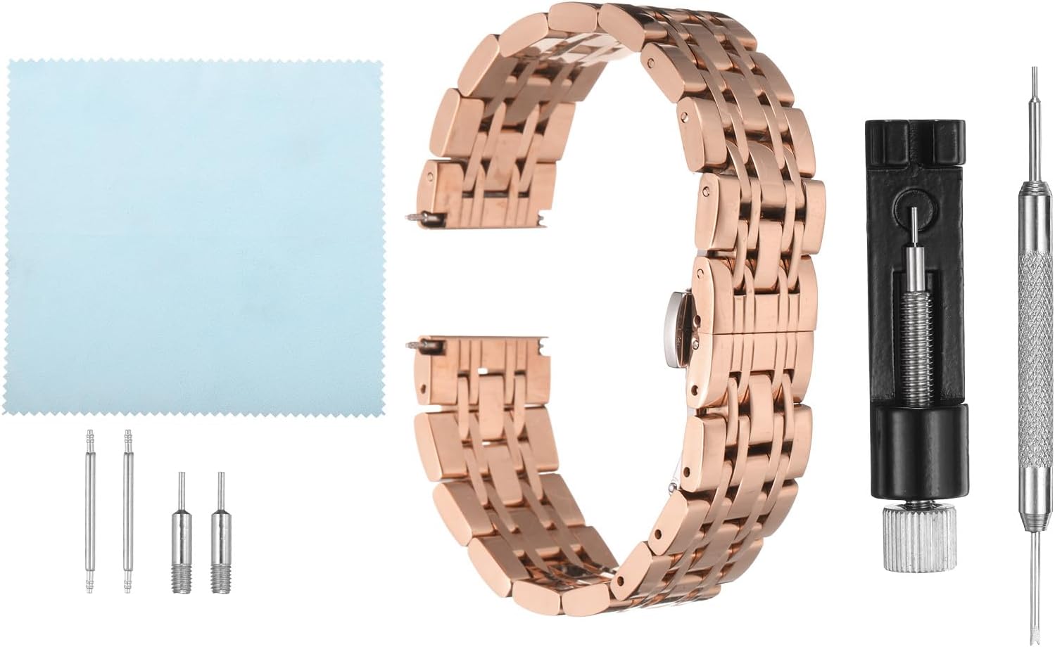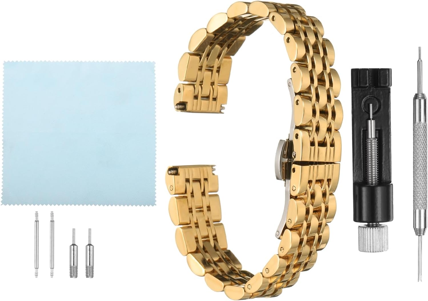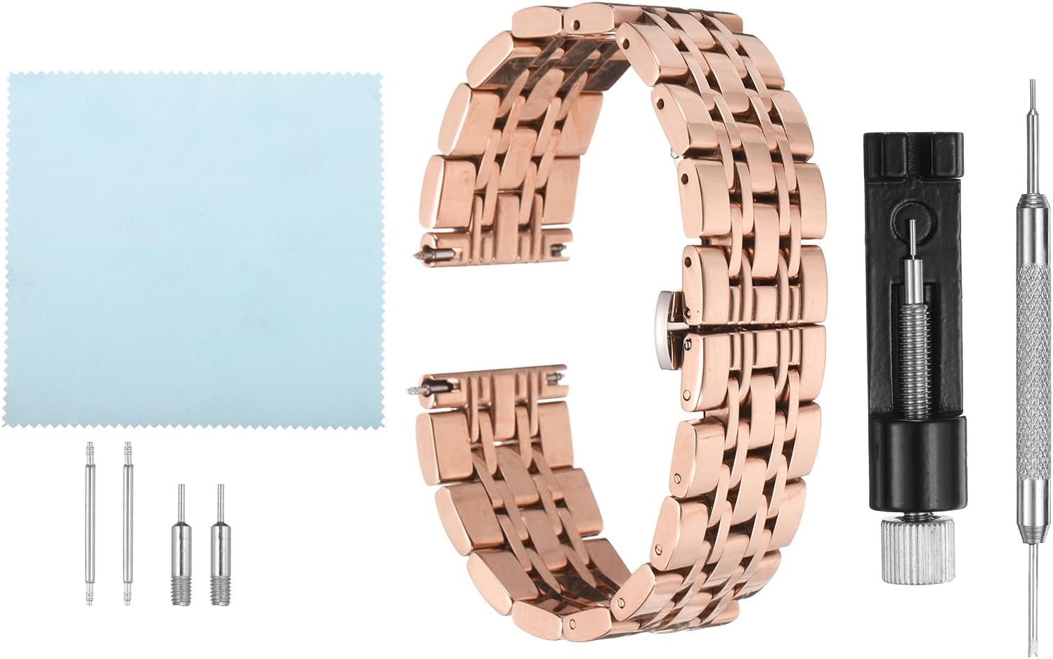 The watch strap adopts stainless steel material with a polished finish, which is durable and rust-proof, and a variety of color options ensure matching between watches and clothes.The butterfly clasp with dual push buttons allows for quick and easy adjustment of the band length, both sides of the band feature quick-release springs bars, allowing you to change the band easily without any tools.The folding clasp band is simple and elegant, suitable for both men and women. The stainless steel band fits various types of watches and can be paired with both casual and formal outfits.Before purchasing, please measure the lug width of your watch or check the size of your original band directly to choose the correct width.