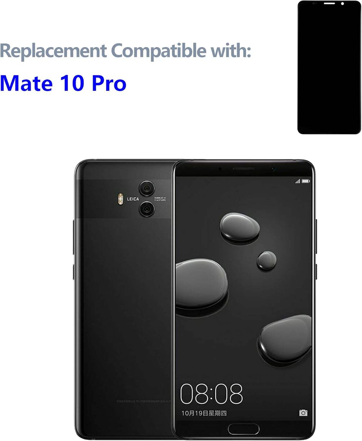 Product Name: For Huawei Mate 10 Pro Screen ReplacementColor: BlackCompatibility:BLA-L09 BLA-L29 BLA-A09Size: 6.0 inchMaterial: TFTPackaging: 1* Black LCD Display Touch Screen Replacement1*special removal toolsTips for intallation1.Watch a YouTube instruction video before installation. 2.Must be disconnected the battery cable or powered off the phone before installation. This will protect your phone from damage if the improper operation done.3.Use the correct screwdriver to open the screws. Mark the screws and keep in mind it's original location. These screws have different size and length, if put into the wrong place, the screen may be damaged.4.Do not pull the flex cable. Be careful during installation, otherwise will cause the black screen, blurred screen or no display.How to protect your screen 1. Put your phone together with keys, coins or other metalworks because these things can scratch your cellphone's display. 2. Keep your phone away from magnetic materials because the magnetic materials can become dead if you keep them together for a long time. Protect your cell phone with a screen protector. Contact us If you have any questions or problems using our products, please send us a message, we will answer you within of 24 hours. Thank you for your patience.
