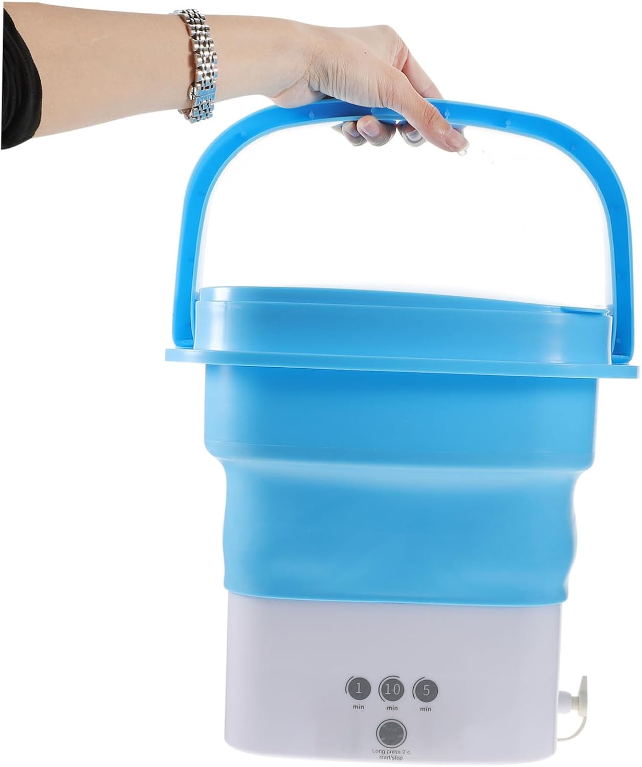 Package List 1 x washer 1 x draining basket 1 x draining 1 x manual 1 x power Features - Size: 28.00X26.00X26.00cm/11.00X10.22X10.22in bucket washing machine - Note: comes with US plug small washing machine portable. -Color:Sky-blue mini portable washer Voltage: 110V portable washer machine -Material:ABS, TPE, copper, PVC small washing machine Rated power: 36W mini washing machine Capacity: 2.8L mini washing machine for apartment - Three modes are adjustable, 2.8L large capacity. Portable design, the bottom suction cup is non-slip, with drainage holes, which is more user-friendly foldable washing machine. - Will not take up much space, about 10 cm after folding, easy to put and store mini folding washing machine portable - Built-in 36w pure copper high-power motor, high-speed operation, control the washing rhythm, and clean more powerfully portable washing machine - All-round rubbing, with high-frequency washing, imitating human hand scrubbing, strong stain removal washing machine. - Special design and it is in fine craftsmanship. This foldable washing machine is the replacement for your old, broken one mini washing machine portable washerGoods Descriptionsmall washing machine Are you looking for a professional, yet reasonable foldable washing machine? Are you in search of a sturdy, trustworthy tool that can do multiple jobs at once? , ! Our foldable washing machine must meet your needs.washing machine This foldable washing machine is one of for you