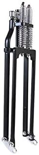 Moto Iron™ brand, Black Stock Length Springer Front End. #113-0039 These Springers will fit most Big Twins from 1949-Present and 1982-2003 Sportsters with 1" neck bearings. Not for use on Dyna Models. Unique Features: Heavy duty, one piece forged rear legs. 1" diameter front legs for improved durability. Precision fit bronze rocker bushings for long life. TIG welded construction. Includes 3/4" axle and spacers for 1984-1999 Wide Glide wheels. Zinc plated axle and steering stem to prevent corrosion. Triple chrome plated or black powdercoated finishes. Fitment Notes: These are designed to fit most Big Twins from 1949-Present and 1982-2003 Sportsters with 1" neck bearings and 3/4" Axle. They include a 1" diameter steering stem, 3/4" diameter axle, and wheel spacers. The included wheel spacers are designed to fit Wide Glide wheels from 1984-1999. They work with a 11.5" brake rotor (84-99) and Springer type brake calipers. To install on 1952-1981 Sportsters, a 7/8"-1" neck cup conversion kit will be needed. You can run other wheels (Narrow Glide, etc...) but you will need to cut your own wheel spacers in order to do so. The top tree accepts 1/2"-20 fine thread risers and the riser spacing is 4.75" center to center (same as OEM Springers) keep that in mind when purchasing handlebars. If you want to run OEM style handlebars with 3.5" riser spacing you will need to purchase a riser adapter kit. These will not fit the following bikes: 2004 and newer Sportsters because of turning radius and fork lock interference Dyna wide glide or narrow glide. Yamaha XS650, unless you purchase a conversion kit. Vintage Triumph Models unless you purchase a conversion kit.