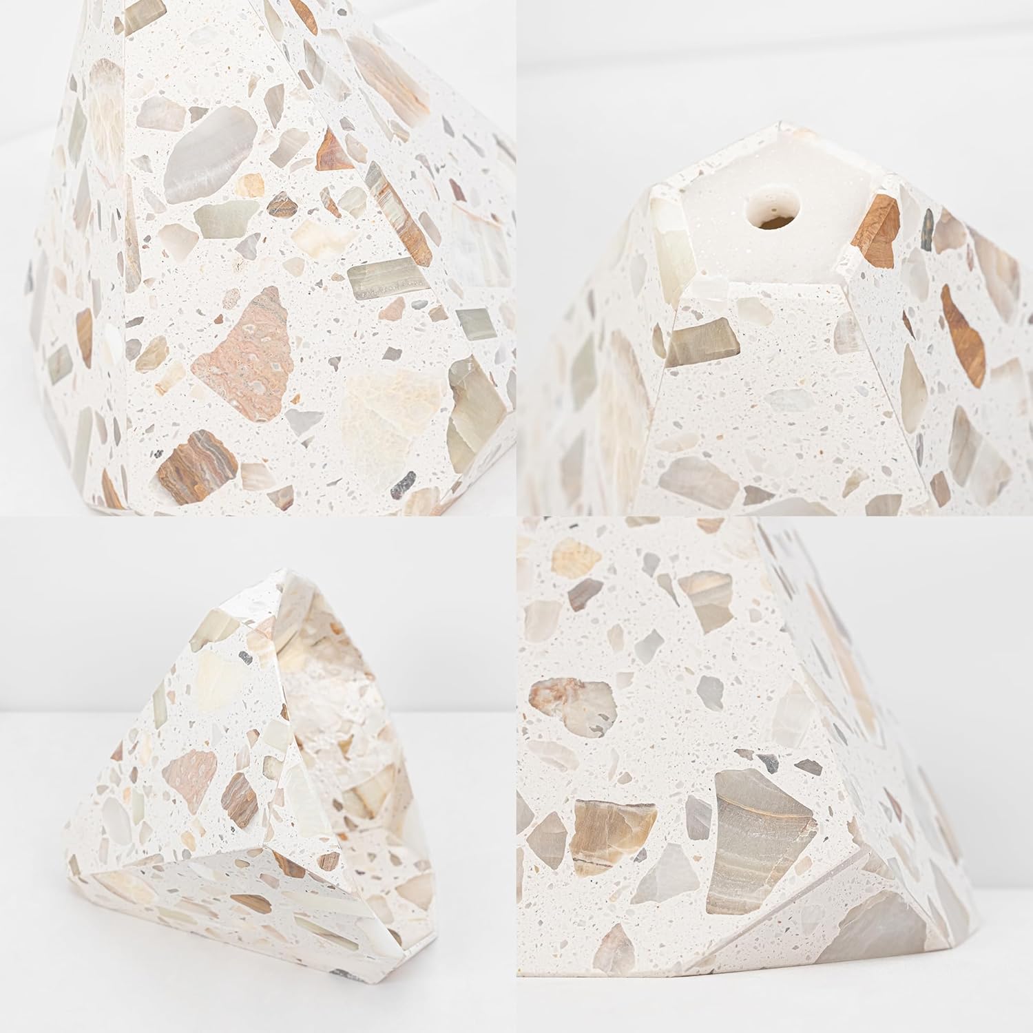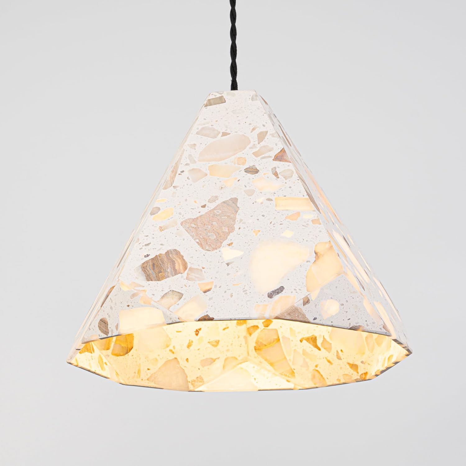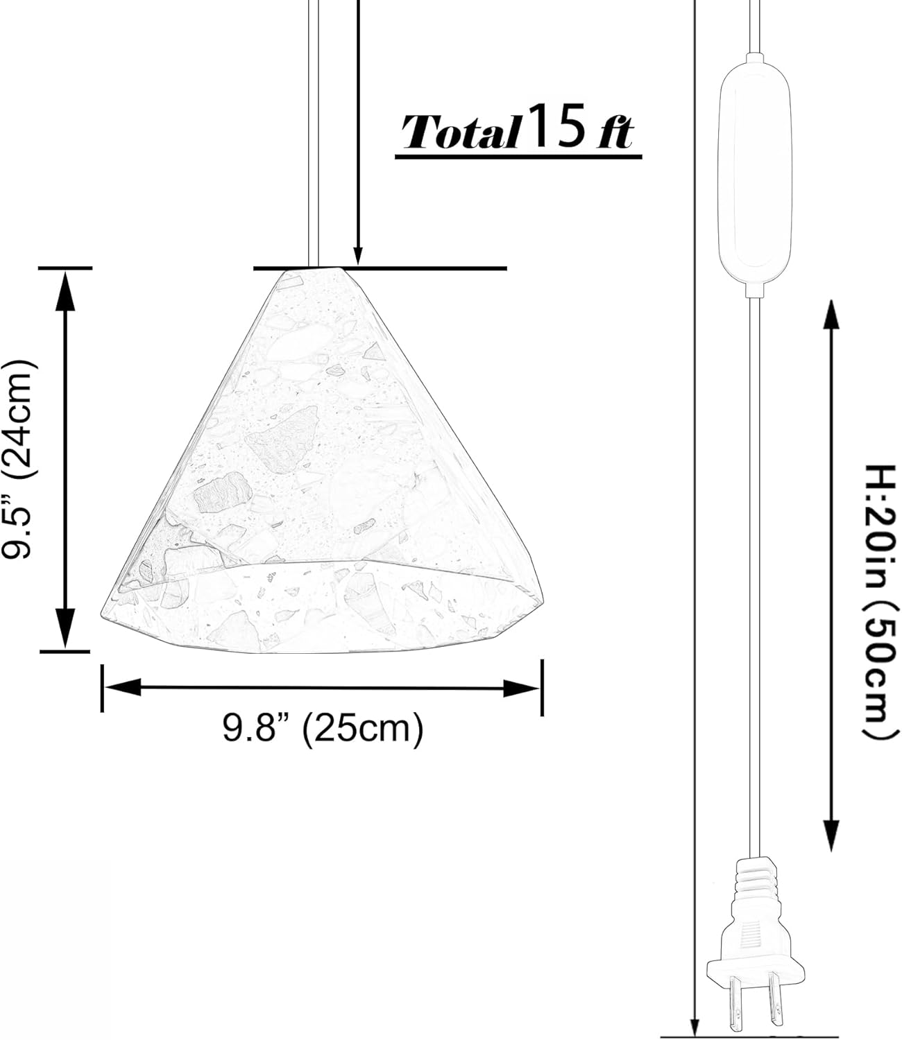 Specifications: The whole wire length is 15ft(4.5 m) With a UL Certification Plug-In Dimmable Switch Cord. The distance between switch and plug is 20in(50cm) Bulb Type: E26/E27(Bulbs Not Included) Unique: This is a uniquely beautiful lamp. Natural agate gemstones are embedded in ivory terrazzo and polished to a silky smooth finish that is cool to the touch. with Timed SettingsThe irradiation time can be adjusted at any time according to the plant growth. When you select a time period, the automatic light will cycle on and off each day. Now, it is time to have your pendant Light to spice up your spaces,the warm desided pendant light will adding warm and has a relaxed feel feeling to you. Features: 1.Fascinating colors give your space a new look, it is a good companion for home, restaurant and commercial lighting. 2.Base one characteristic of the ivory terrazzo material, the shapes and translucency of the stone are random. It made each of the table lamp become unique. 3.We offer free custom cord color and length. Size of White Stone lampshade: 9.8"/25cm, H: 9.5"/24cm Color: White Kindly Notice Any cooperation or bulk order are welcomed. Let's know your ideas.