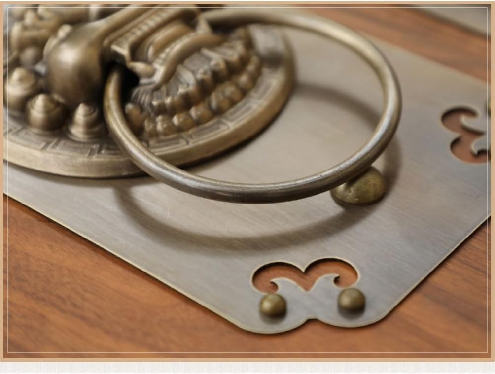 APPEARANCE: This door ring is made of high-quality materials, sturdy and durable, comfortable to the touch and durable. large ring door ring design with exquisite details.Ensure lasting strength and durability.Our door ring is for money as it is made from quality materials and will last for years without replacement or maintenance.Easy to installThe door ring is designed to be easy to install and comes with all the necessary hardware for quick and easy installation.Square HeadApplication: DoorMaterial: BrassInstallation: Fixed with screws and brass nailsStyle New Chinese/AntiquePackage Includes1 × Door ring