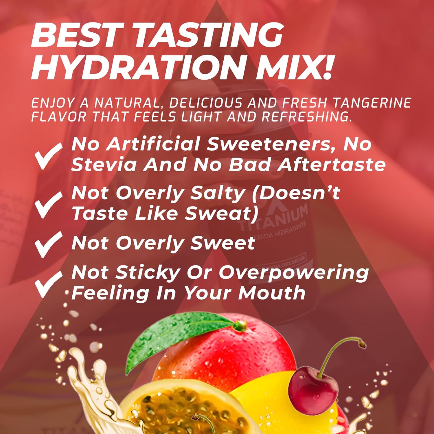• OUR MIX TASTES AS WE SAY – No artificial sweeteners, no stevia and no alka seltzer-like flavors; you will not get lingering aftertaste, stickiness or over salty feeling in your mouth; you will get a light natural fresh tangerine taste that is neither too sweet nor it tastes like sweat